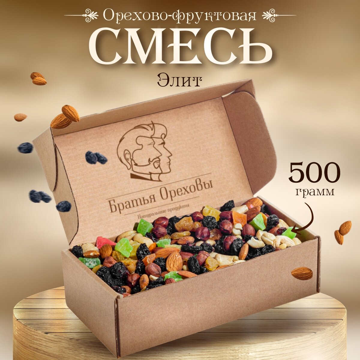 Купить Смесь орехов и сухофруктов Элит (Миндаль, кешью, фундук, цукаты, изюм) Братья Ореховы, 500 г