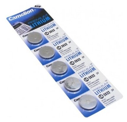 CR2032 Батарейка CAMELION Lithium CR2032 BL-5, 5 шт. 210мAч