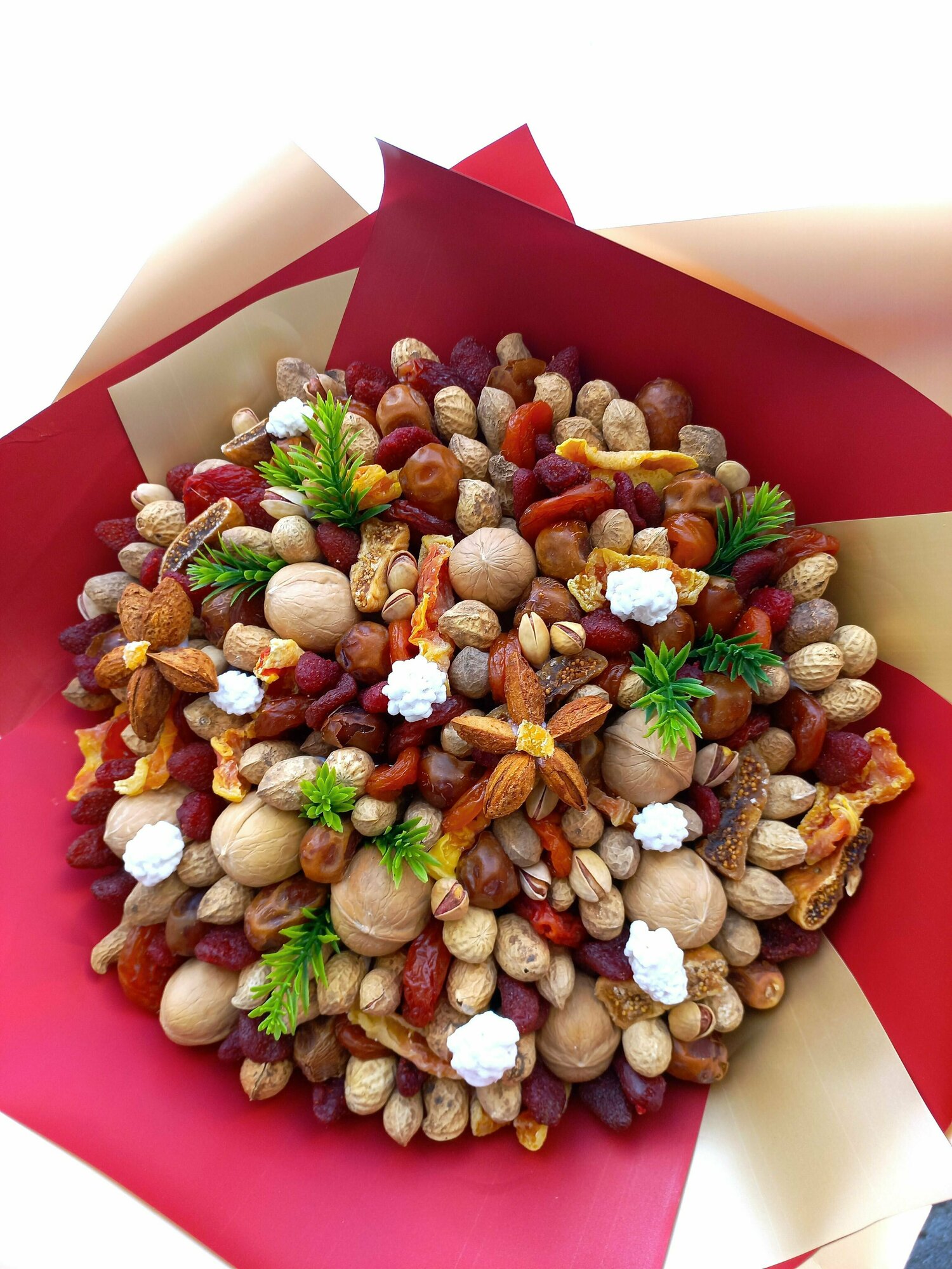 Букет из сухофруктов и орехов съедобный подарок интересное: