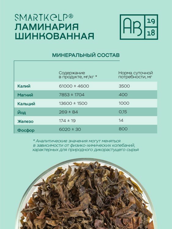 Ламинария шинкованная суперфуд АВ1918, 60 г, водоросли беломорские интересное:
