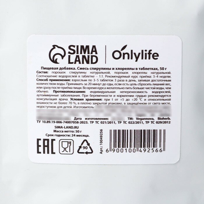 Купить Спирулина и хлорелла, для иммунитета и похудения, в таблетках, 50 г.