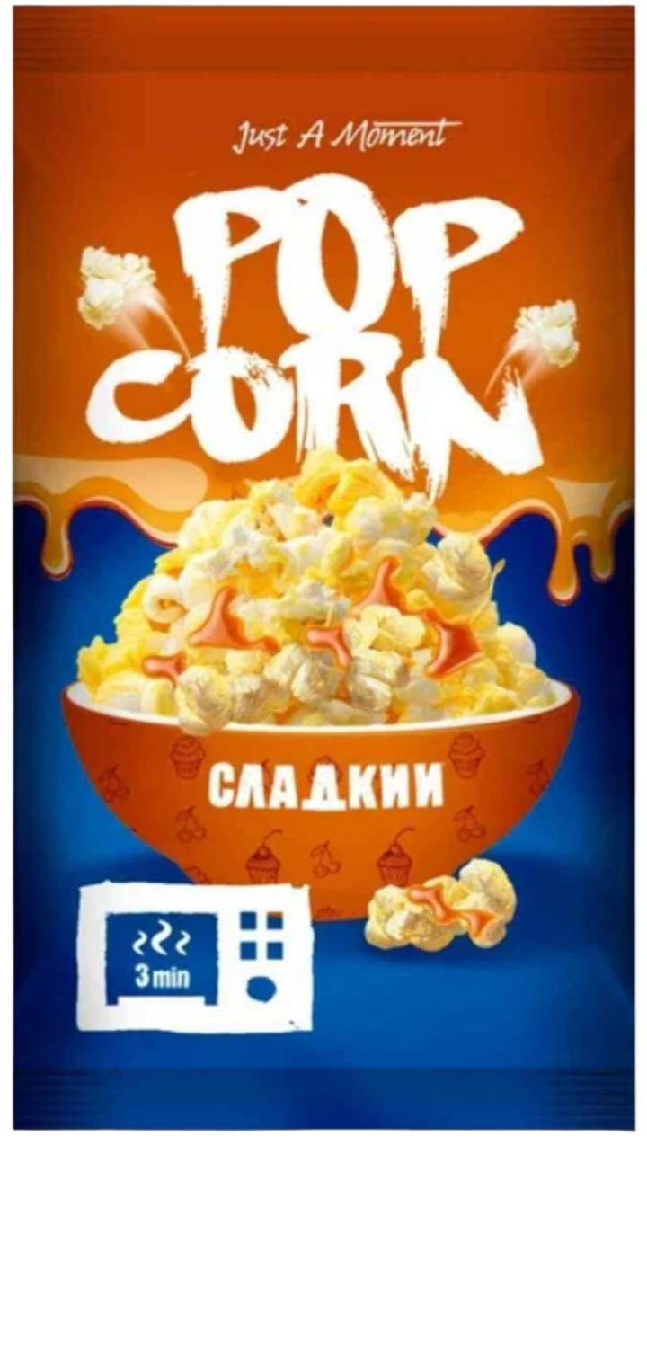 | Дополнительная информация | Способ приготовления: 1. Извлечь внутренний бумажный пакет из упаковки и поместить его в центр микроволновой печи (загнутыми краями вверх). 2. Включить СВЧ печь и ждать характерного потрескивания. Стандартное время приготовления в СВЧ- печи составляет 2-3 минуты в зависимости от мощности печи ( 700 Вт – около 3 мин, 900 Вт – около 2 мин). 3. Когда потрескивание замедлиться и будет раздаваться с интервалом в 2-3 секунды выключить печь. Взять пакет за края осторожно, чтобы не обжечься, вынуть из печи. 4. Потрясти пакет и открыть, потянув за края в разные стороны. ОСТОРОЖНО! Не обожгитесь паром, при открывание пакета. 5. Готовый попкорн высыпать в подходящую посуду. 6. ПРИЯТНОГО АППЕТИТА!!! |