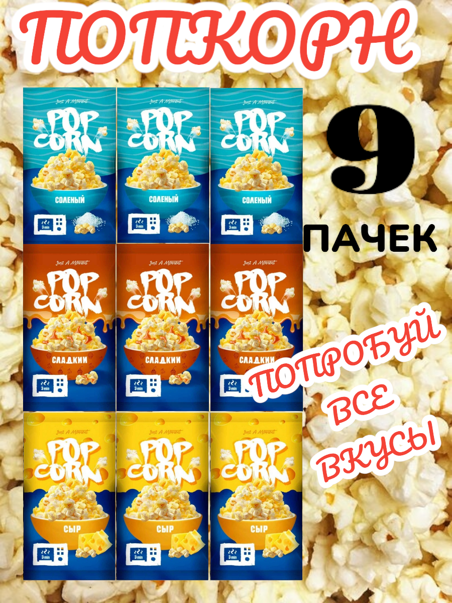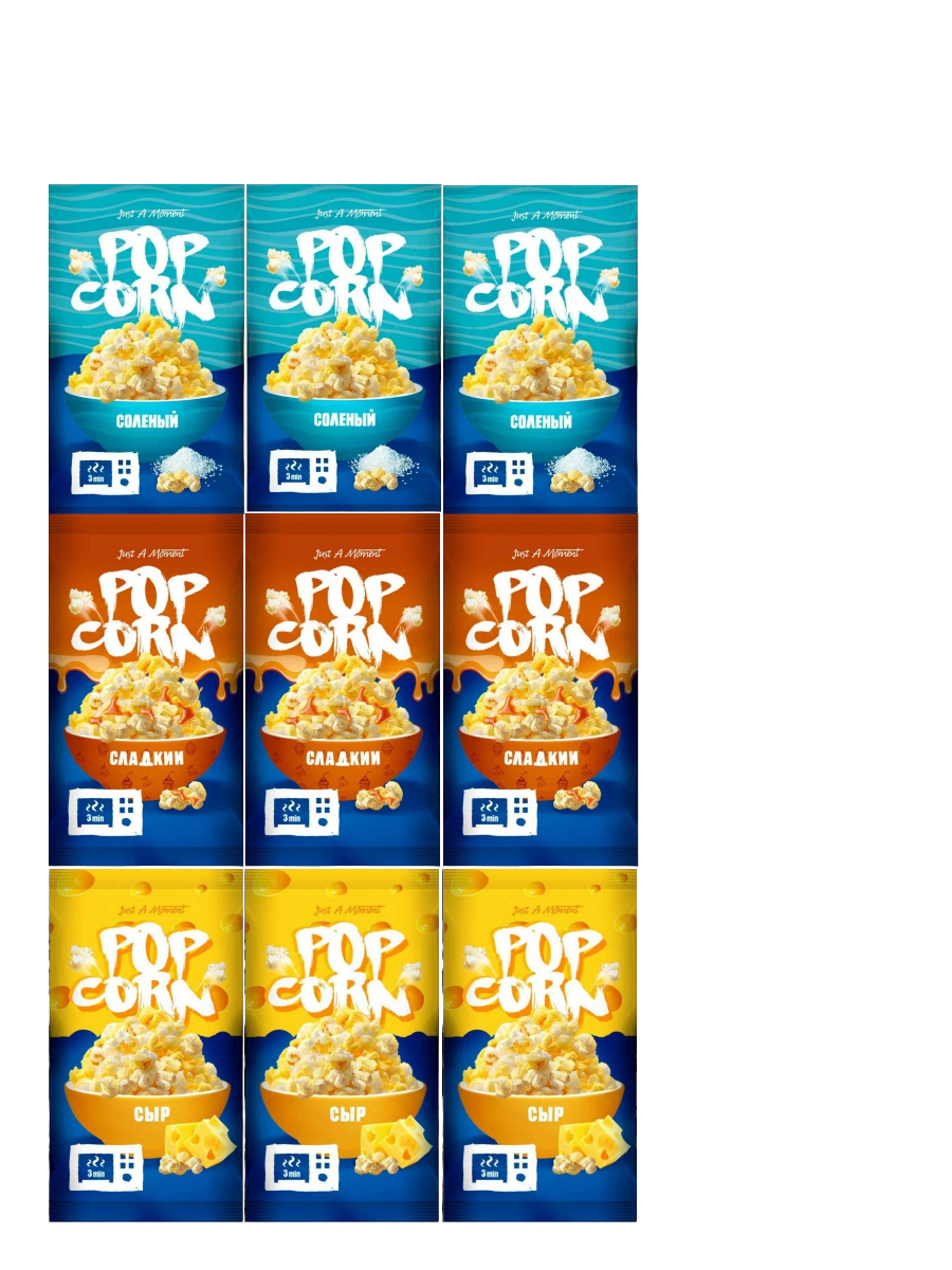 попкорн Jam для свч 9 штук сладкий, соленый,сыр по 3 штуки интересное: