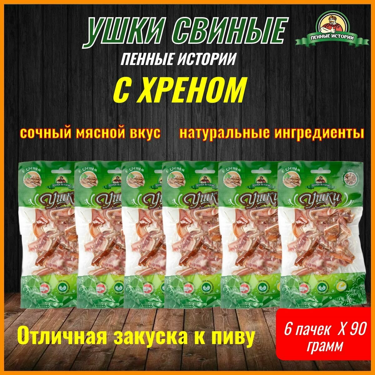 Купить Ушки свиные к пиву "Пенные Истории" С Хреном 6 шт по 90 грамм