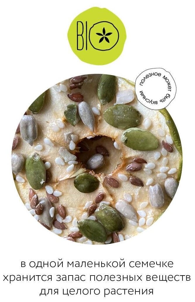 | Состав | яблоко сушеное; фруктозный сироп; кунжут белый; льна бурого семена; семена подсолнечника очищенные; семена тыквы сушеные. |