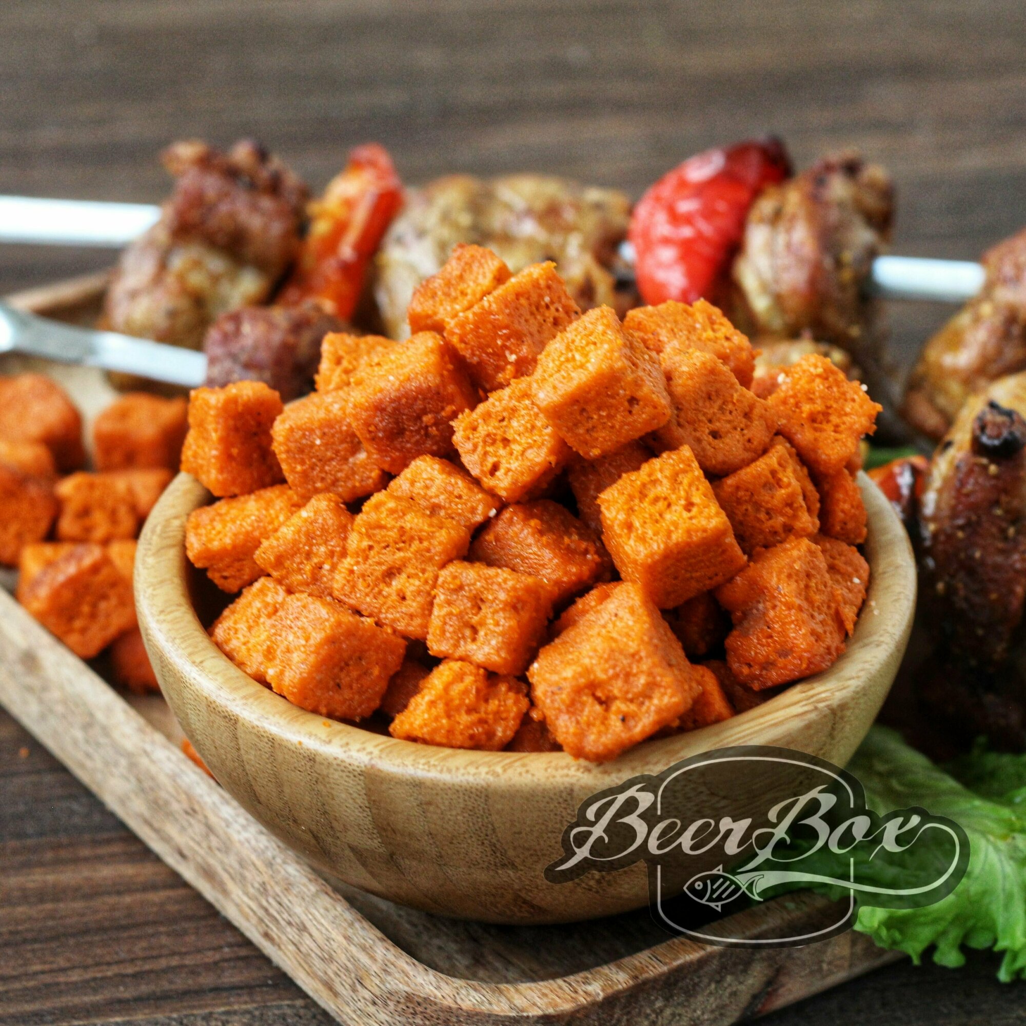 Купить Сухарики пшеничные, цветные кубики "OMAGAD" со вкусом Шашлыка, гренки к Пенному 1 кг Averton snack