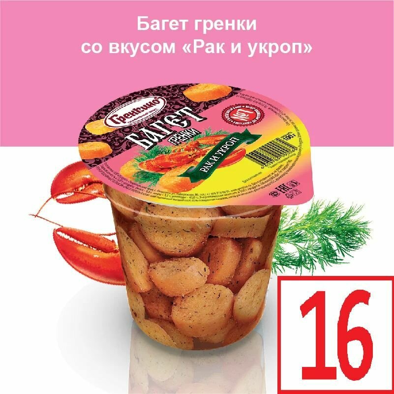 СохранитьСтакан Гренки 16 штук по 100 грамм Сухарики багет снеки "Рак и Укроп" ТМ "гренкино" интересное:
