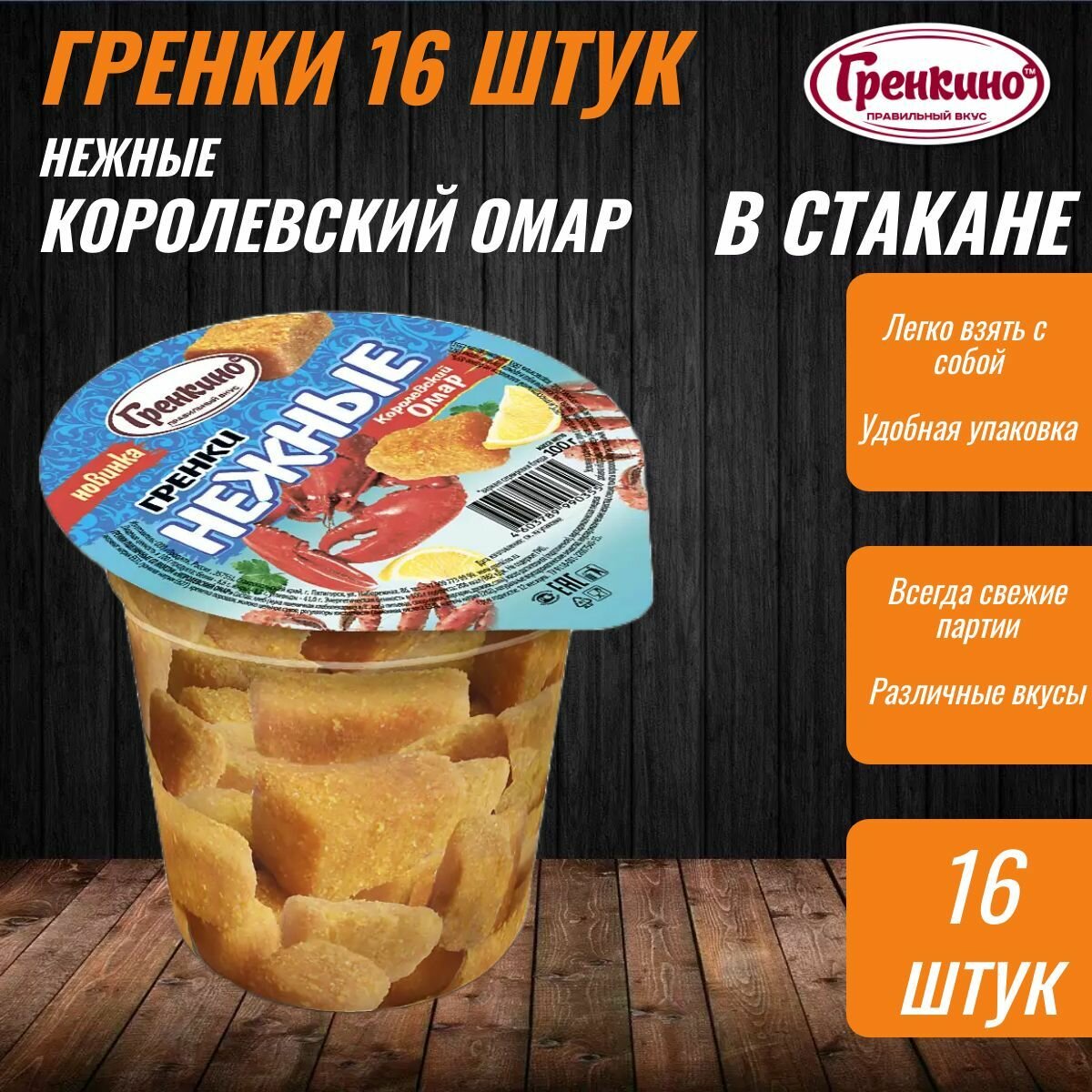 СохранитьСтакан Гренки 16 штук по 100 грамм Сухарики нежные снеки "Королевский Омар" ТМ "гренкино" интересное: