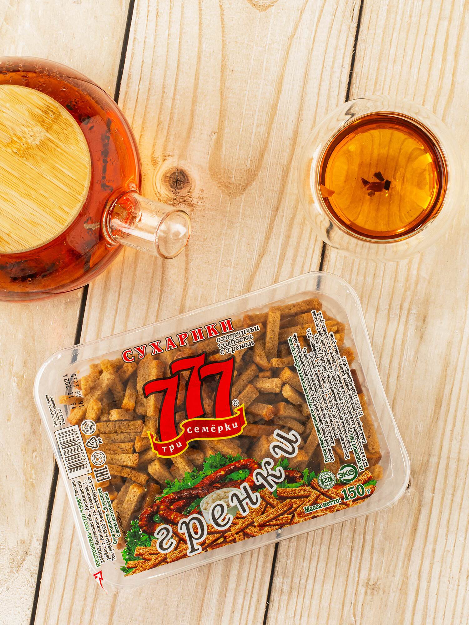 | Состав | хлеб ржано-пшеничный ( мука ржаная, пшеничная, вода, соль, дрожжи х\п), масло растительное, ароматизатор "холодец и хрен" |