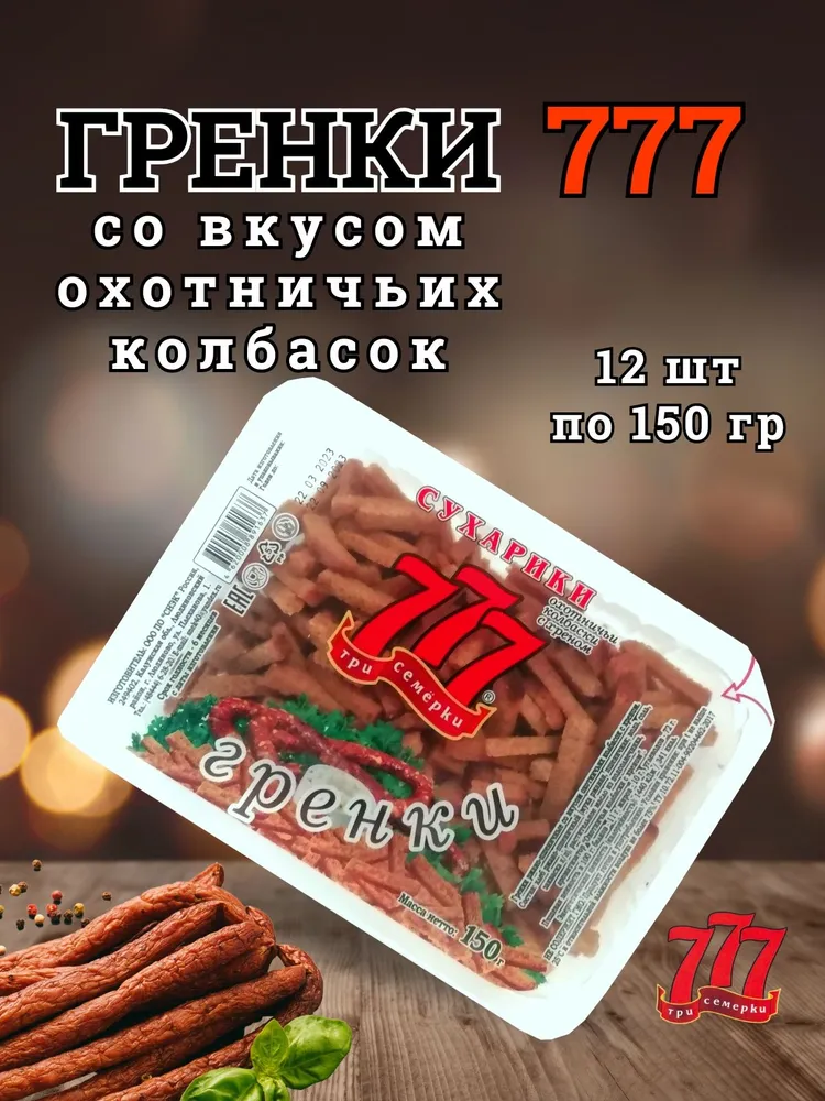 Ниже Вы можете прочитать отзывы на Сухарики гренки 777 со вкусом охотничьих колбасок (контейнер), 12 шт по 150 гр, ознакомится с подробными характеристиками, посмотреть интересные обзоры и фотографии на Сухарики гренки 777 со вкусом охотничьих колбасок (контейнер), 12 шт по 150 гр.