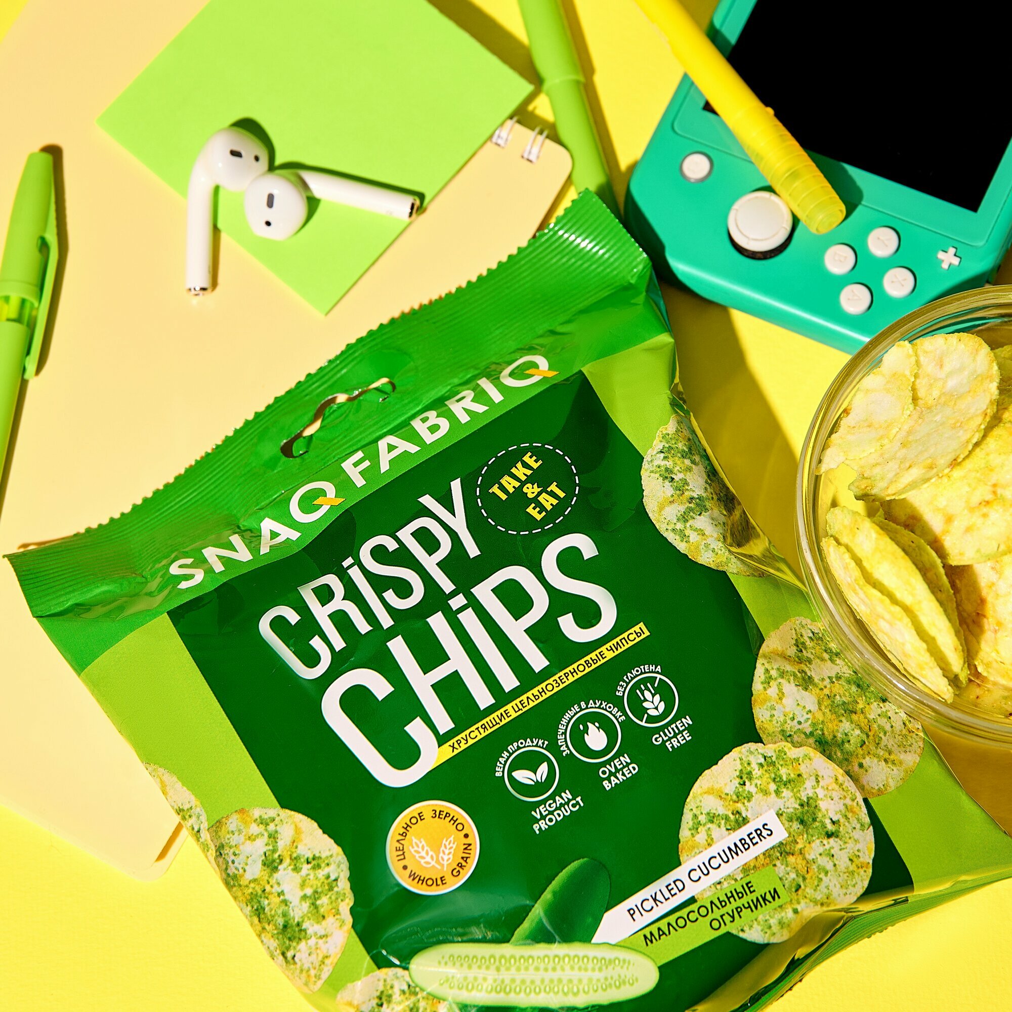 Чипсы цельнозерновые Snaq Fabriq Crispy Chips со вкусом "Малосольные Огурчики", 6шт х 50 г интересное: