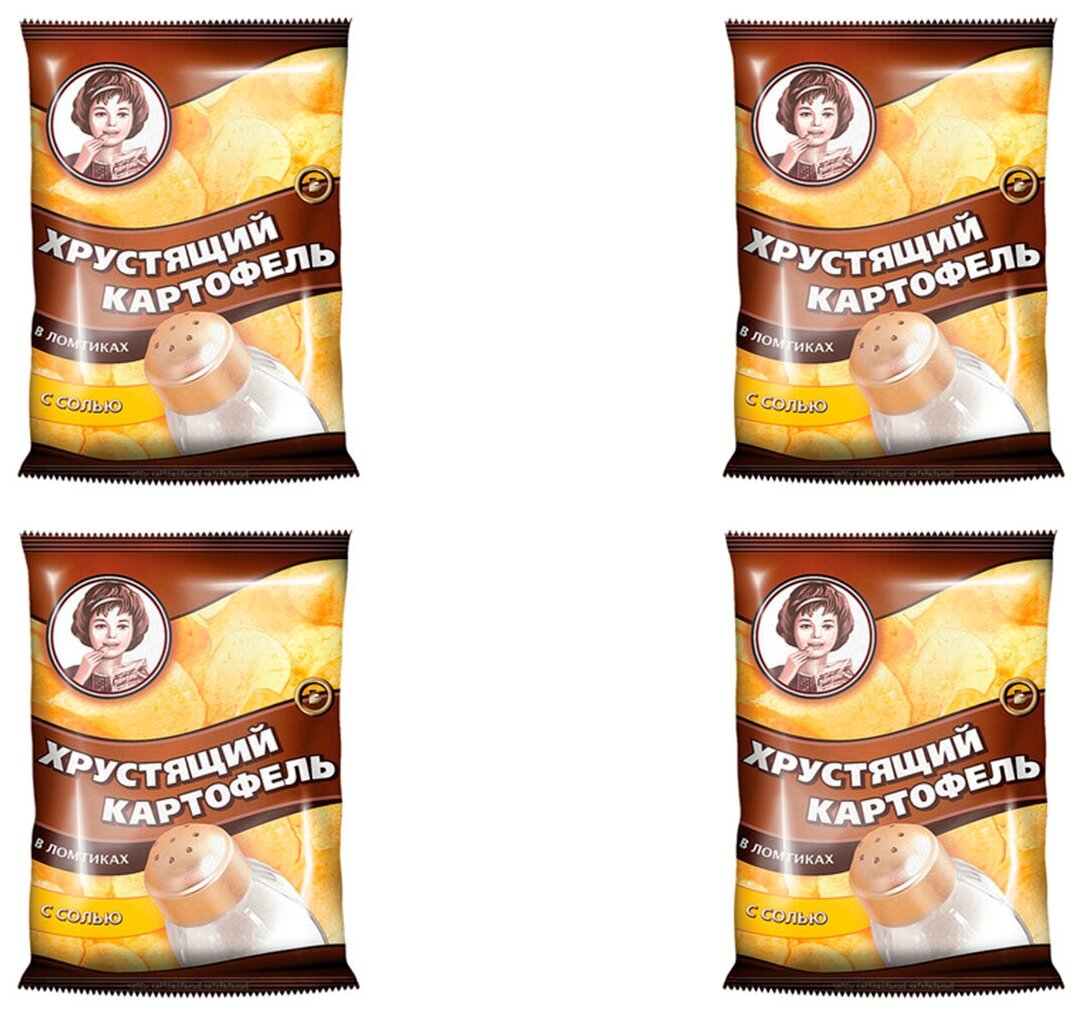 Купить «Хрустящий картофель», чипсы с солью, произведены из свежего картофеля, 4 пачки по 40 г