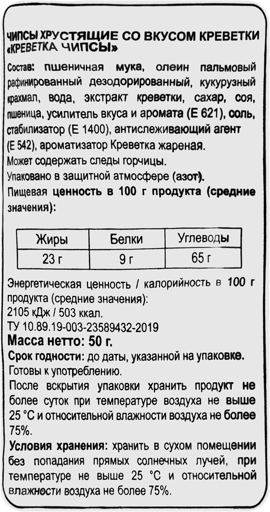 | Состав | полуфабрикат из бездрожжевого теста (пшеничная мука, кукурузный крахмал, крабовый экстракт), пальмовый олеин, специи |