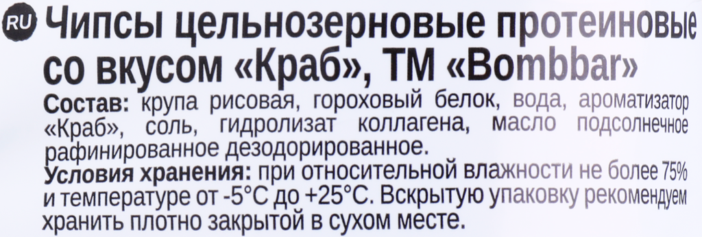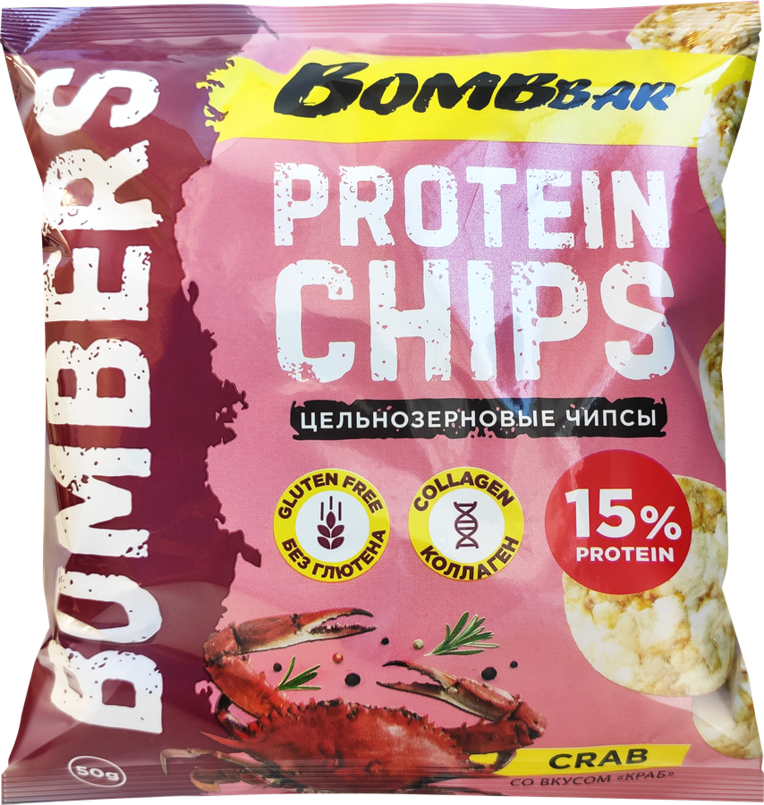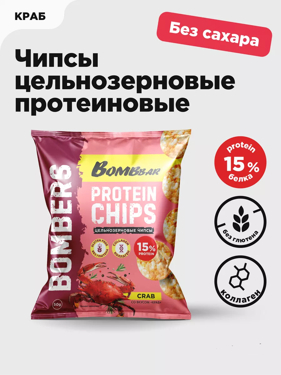 Bombbar, Чипсы цельнозерновые протеиновые "Краб", 50 грамм, 2 упаковки интересное: