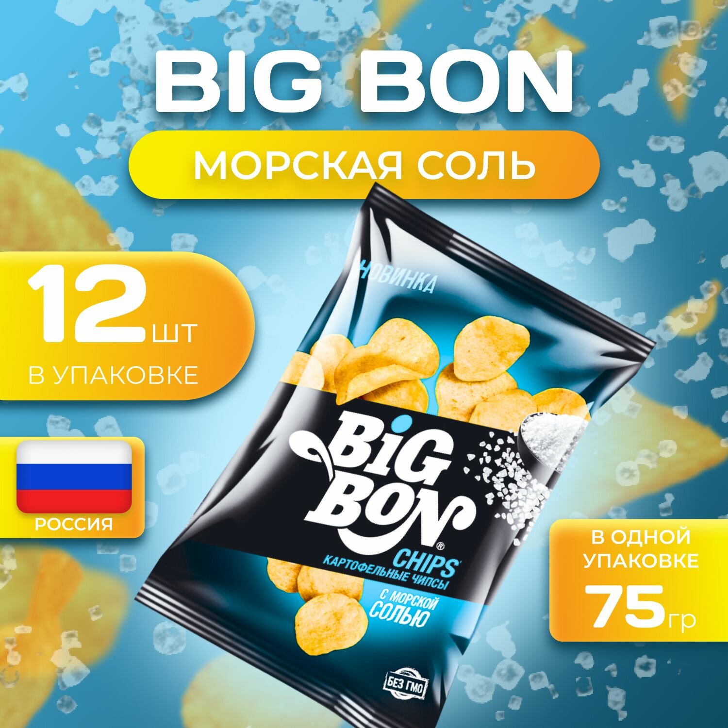 СохранитьКартофельные чипсы Big Bon "Морская соль" 75 гр. 12 шт. Биг Бон интересное: