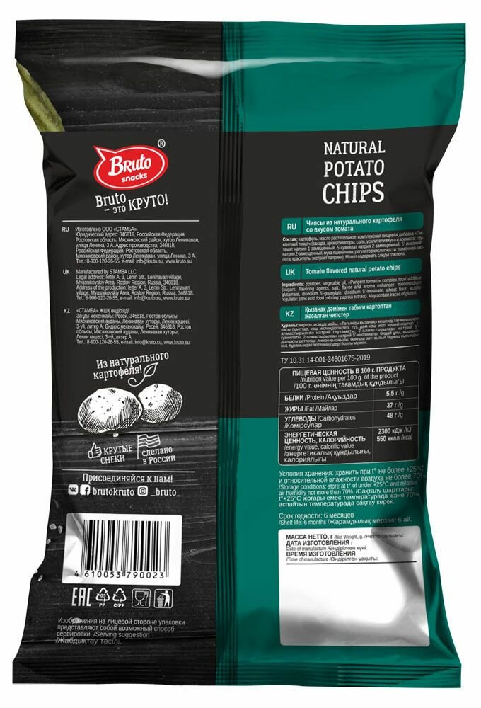 Чипсы Bruto Natural potato chips пикантный томат, 130 г, 5 шт интересное:
