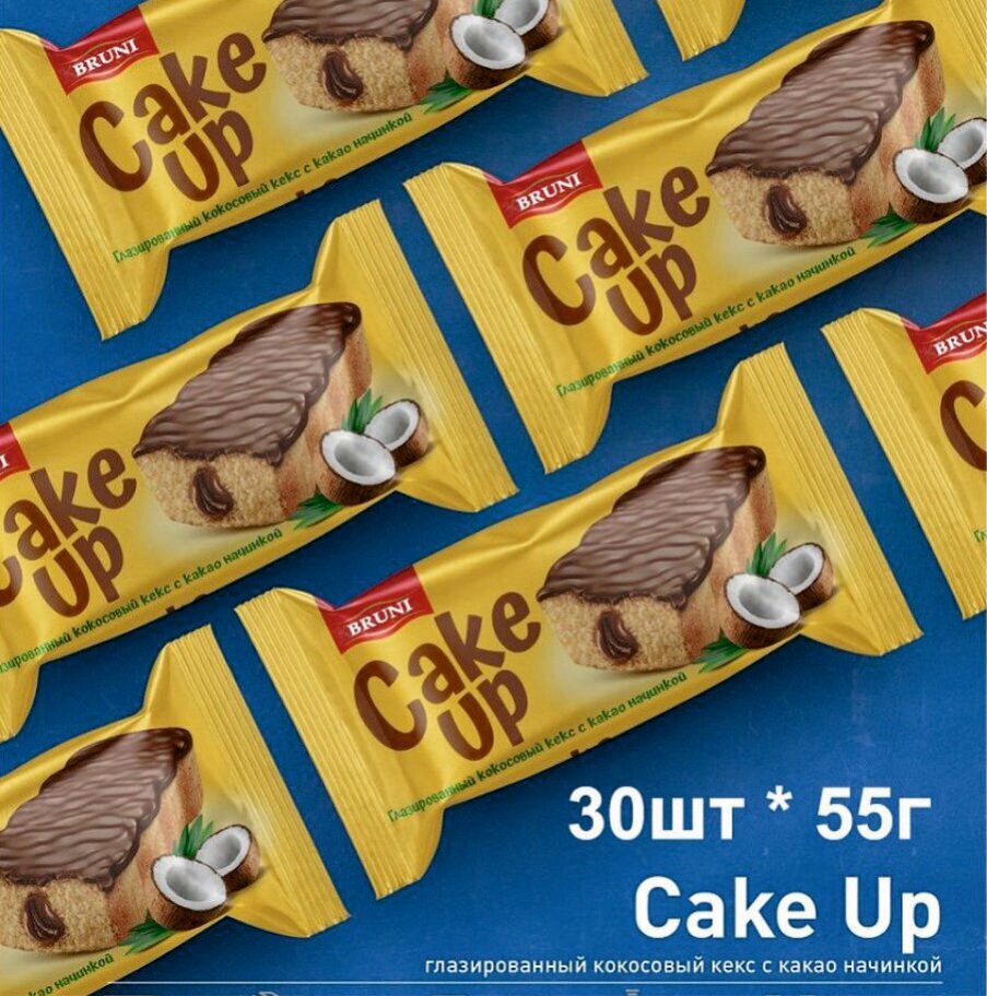 Купить Кекс глазированный CAKE UP кокосовый с какао начинкой (55г х 30шт)