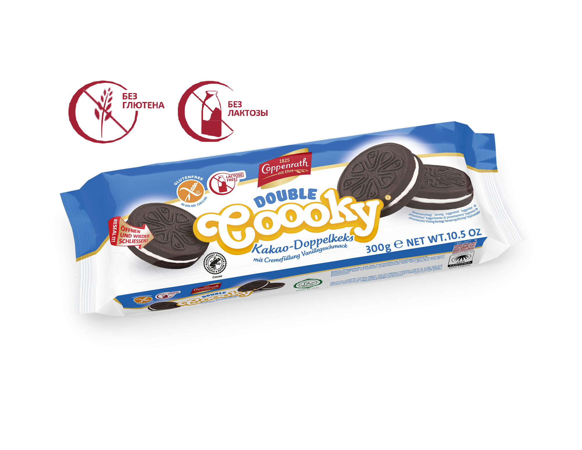 Купить Печенье-сэндвич без глютена и лактозы шоколадное с ванильной начинкой "Coppenrath" Double Coooky 300 грамм