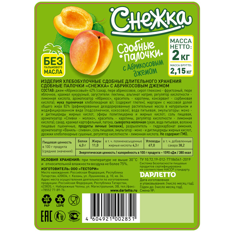 Печенье Снежка Сдобные палочки с абрикосовым джемом, 2кг интересное: