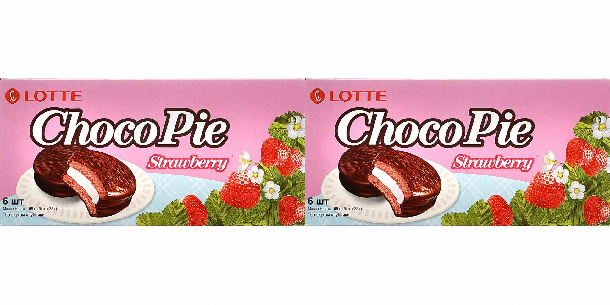 Купить Choco Pie Печенье Lotte, Клубника, 6 шт, 168 г, 2 шт