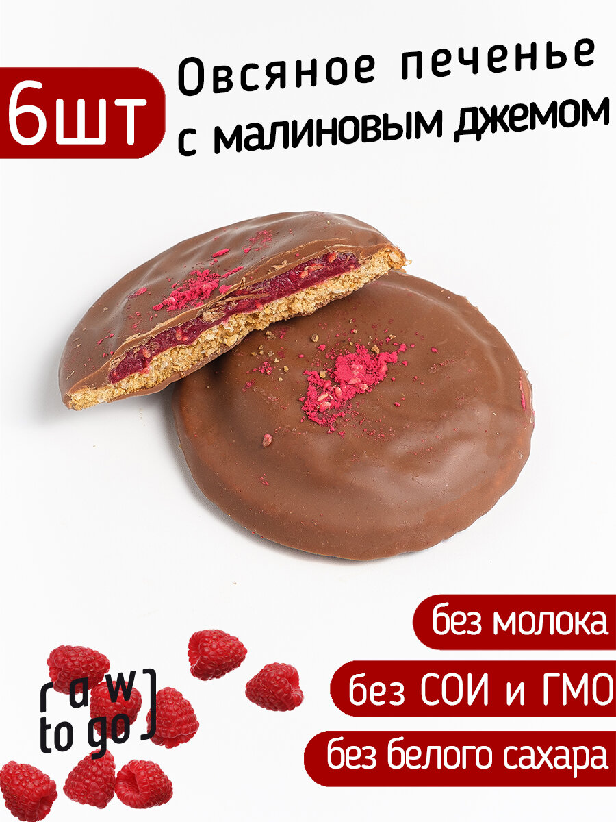 Купить Овсяное печенье с малиновым джемом, без сахара, 6 шт