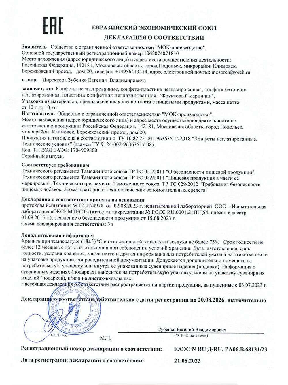 | Стандарты производства | ТУ 10.82.23-002-96363517-2018 |