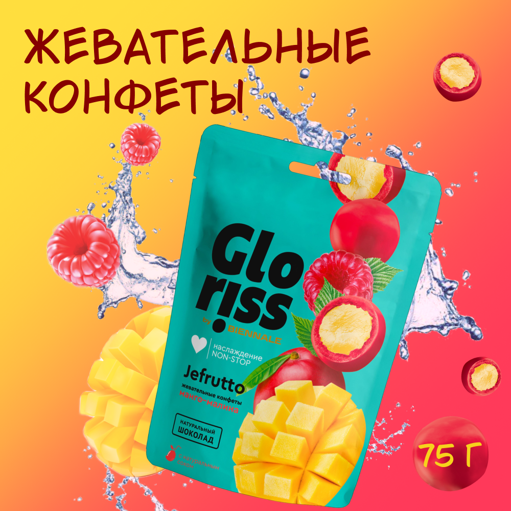 Жевательные конфеты Gloriss BIENNALE " Jefrutto" в шоколаде со вкусом манго-малина 75 г