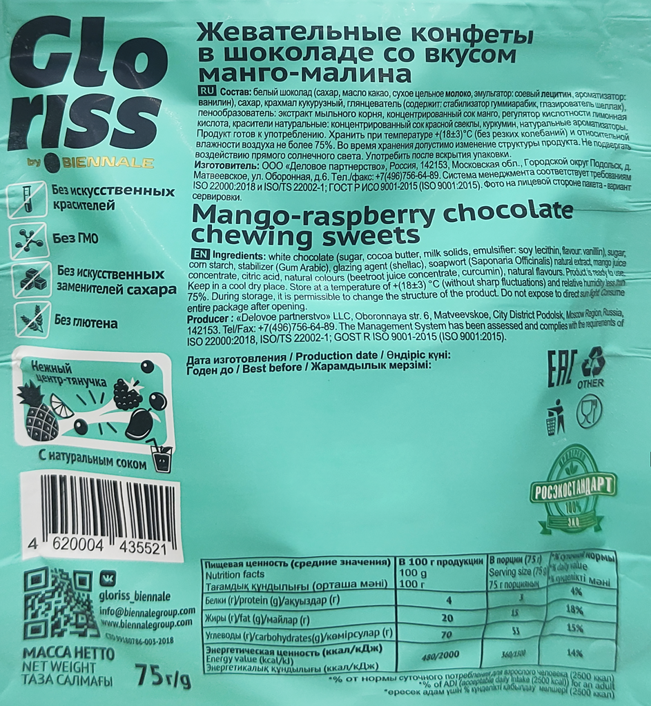 Ниже Вы можете прочитать отзывы на Конфеты шоколадные GLORISS Jefrutto с манго и малиной, 75г, ознакомится с подробными характеристиками, посмотреть интересные обзоры и фотографии на Конфеты шоколадные GLORISS Jefrutto с манго и малиной, 75г.