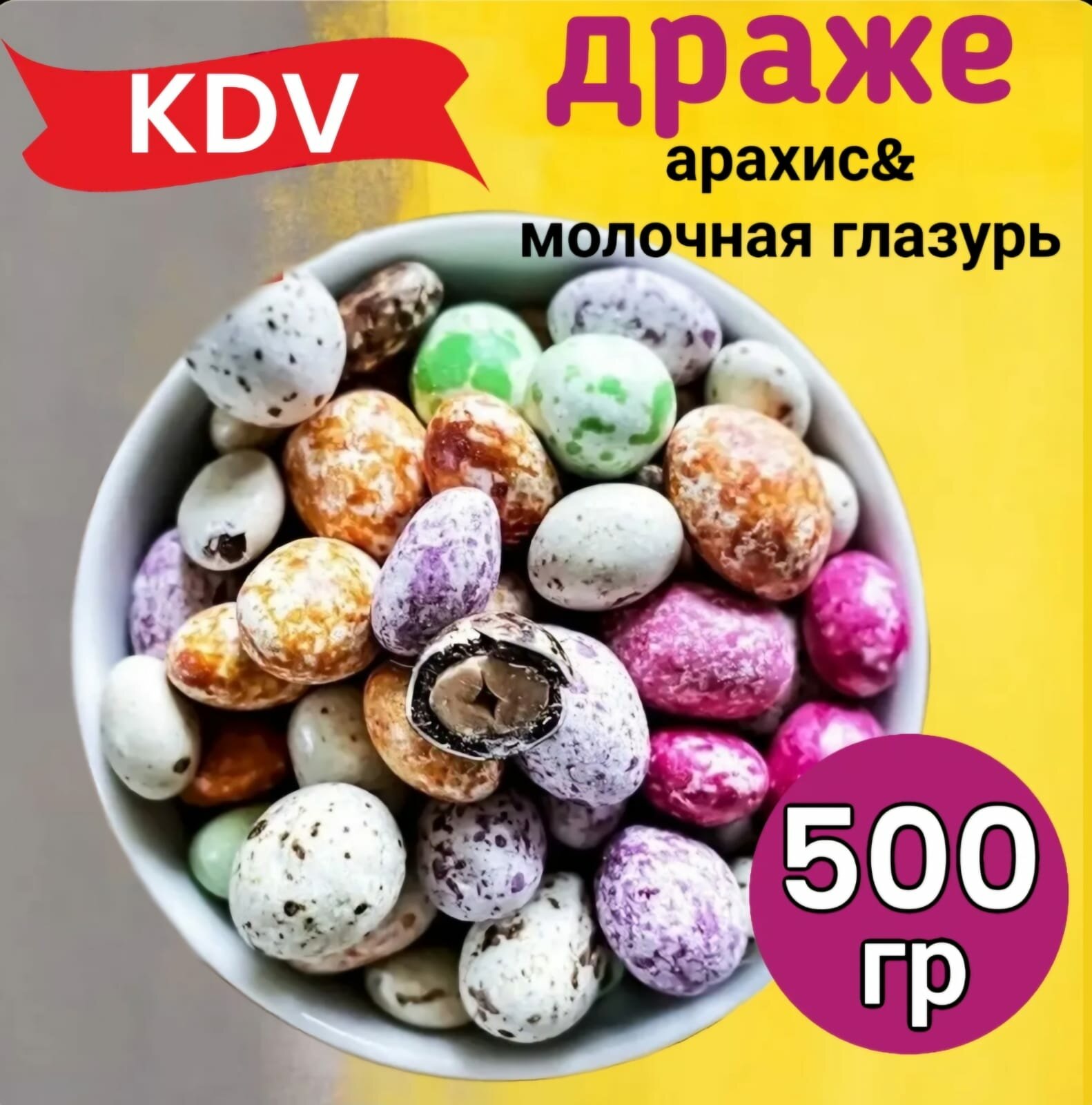 Драже KDV Арахис Dragon eggs в цветной глазури крапинка 500 г