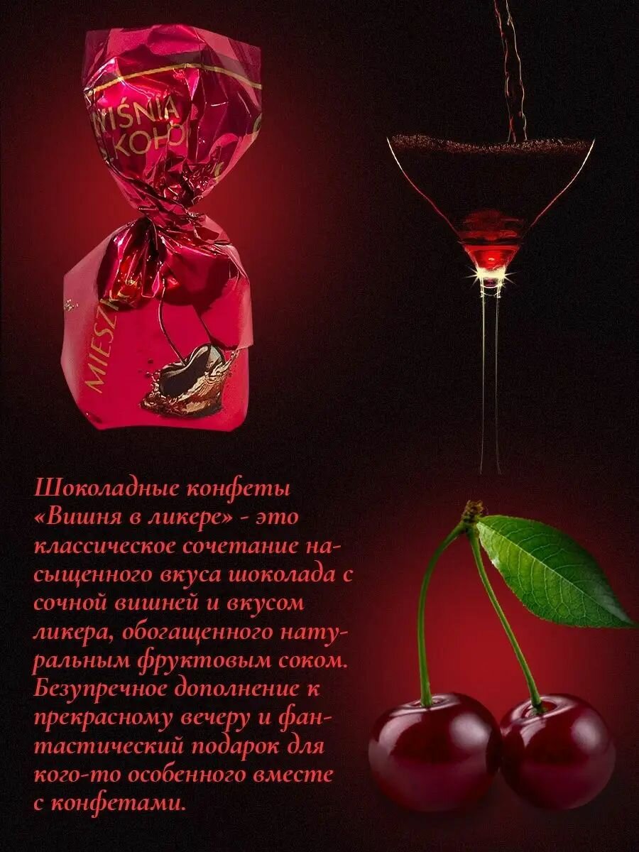 Конфеты шоколадные Вишня в ликере Mieszko, 500 г. интересное: