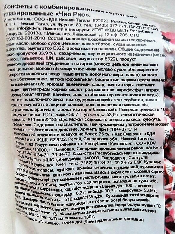 Ниже Вы можете прочитать отзывы на Конфеты Яшкино Чио Рио, начинка пралине, мягкая карамель, пакет, 500 г, флоу-пак, ознакомится с подробными характеристиками, посмотреть интересные обзоры и фотографии на Конфеты Яшкино Чио Рио, начинка пралине, мягкая карамель, пакет, 500 г, флоу-пак.