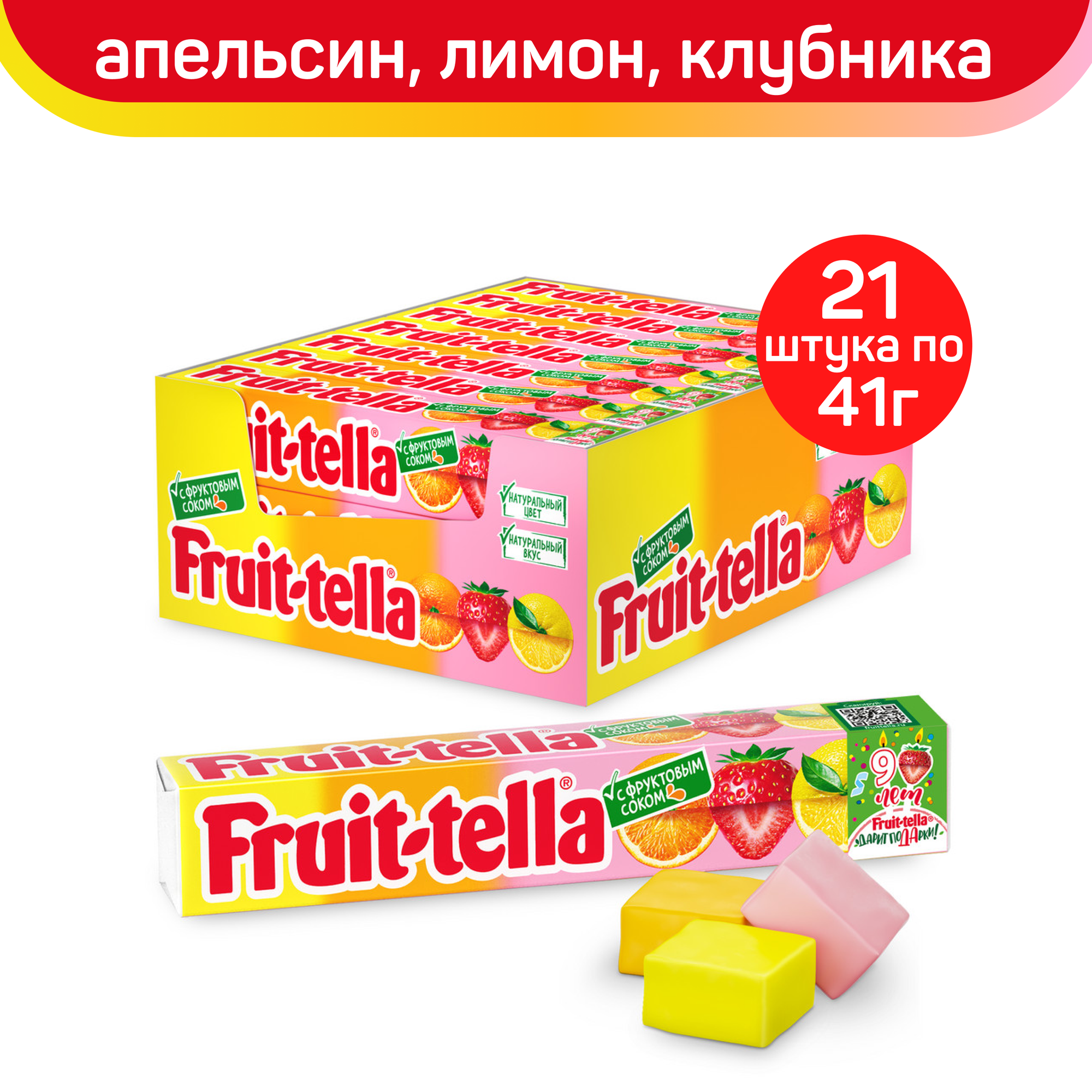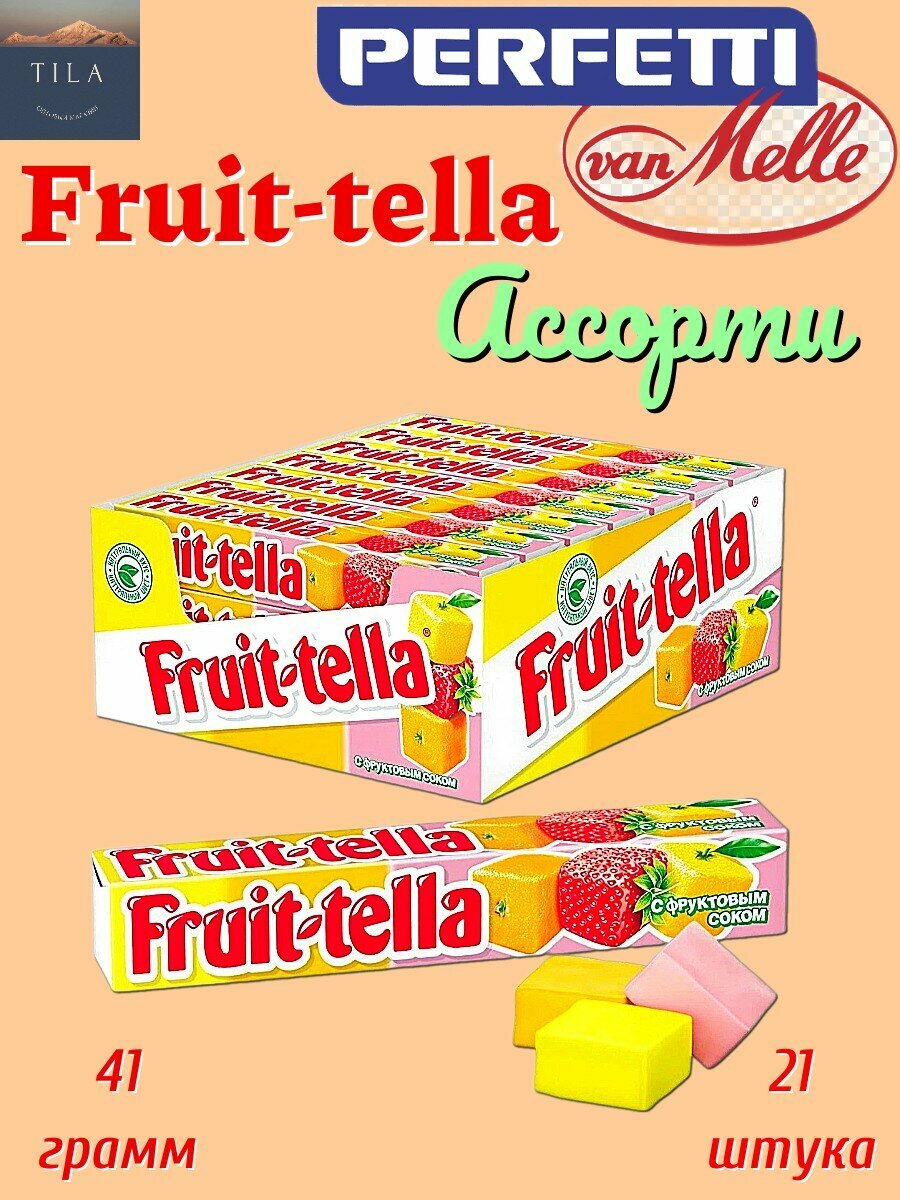 Жевательные конфеты Fruit-tella Ассорти с фруктовым соком, 41 г, 21 шт. в уп., 21 уп.
