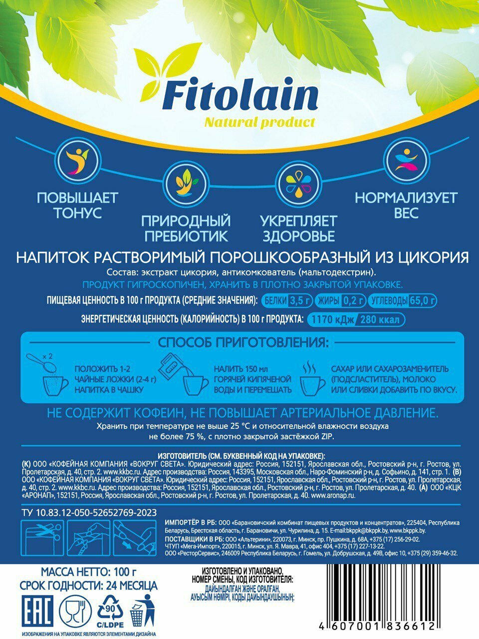 Цикорий растворимый Fitolain 100% натуральный порошок без кофеина без сахара 100 г интересное: