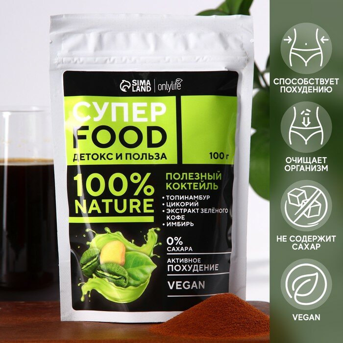Коктейль полезный, экстракт зеленого кофе, топинамбур, цикорий, имбирь, 100 г. интересное: