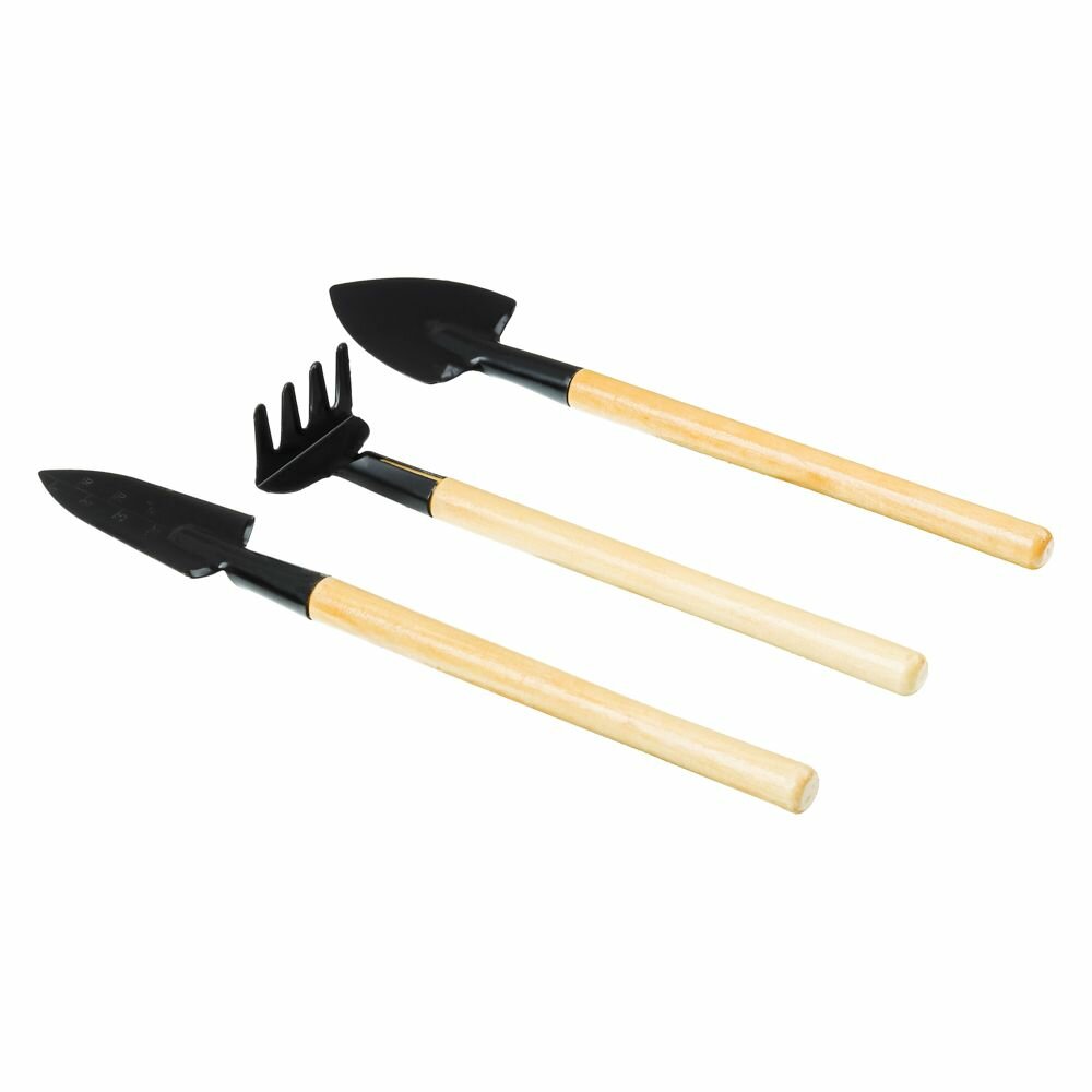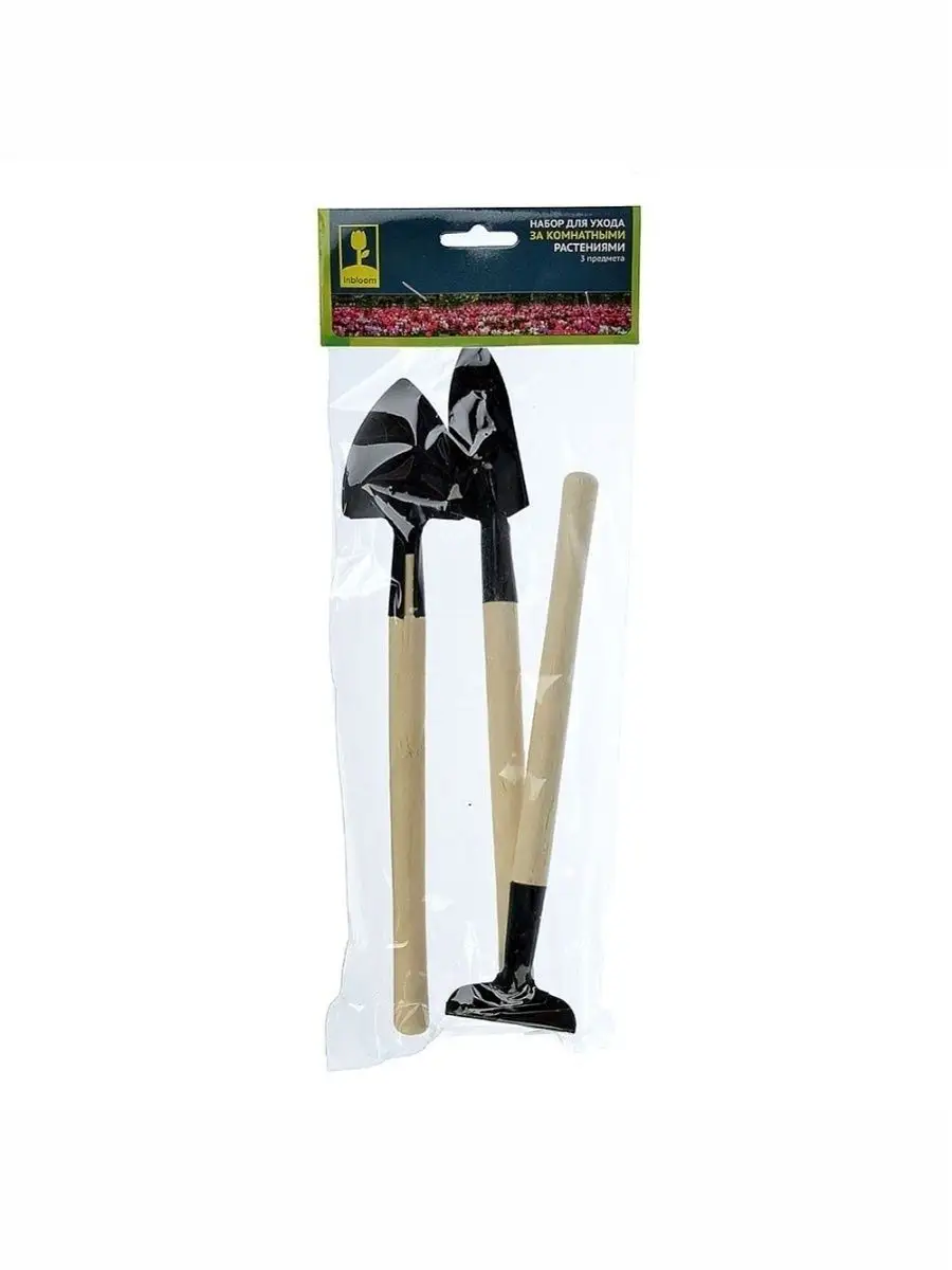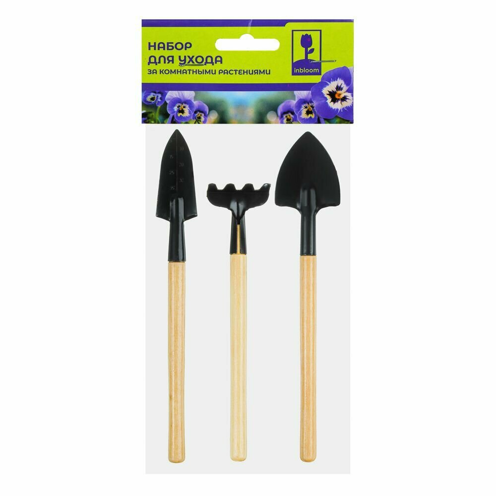 Набор для ухода за комн.растениями INBLOOM (совки 21-22см, грабли 18см) ручки лакирован, мет, дер.