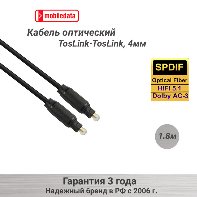 Кабель оптический TosLink-TosLink 4 мм, 1.8 м, Mobiledata интересное: