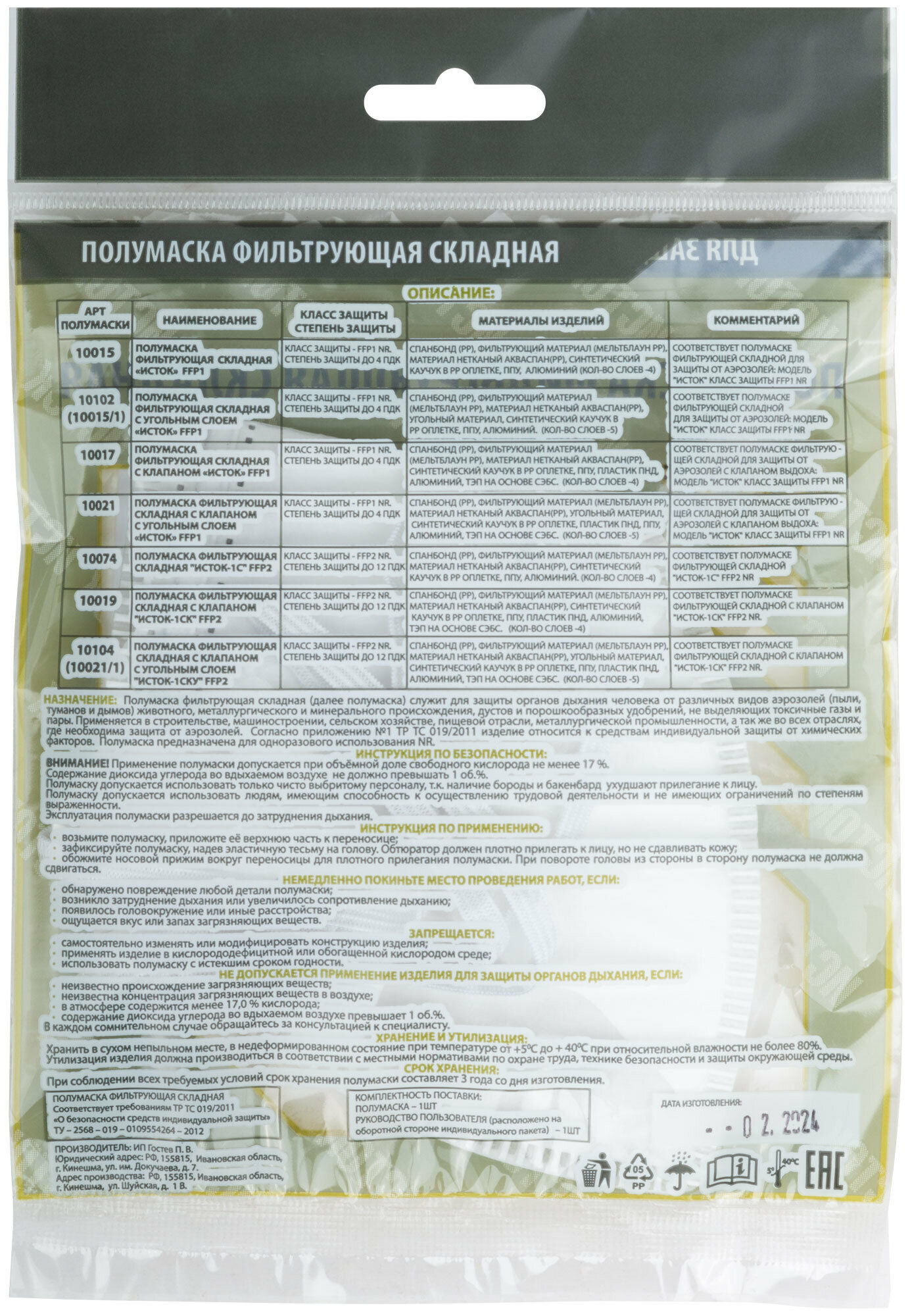 ИСТОК Полумаска фильтрующая складная с клапаном FFP1 в индивидуальной упаковке