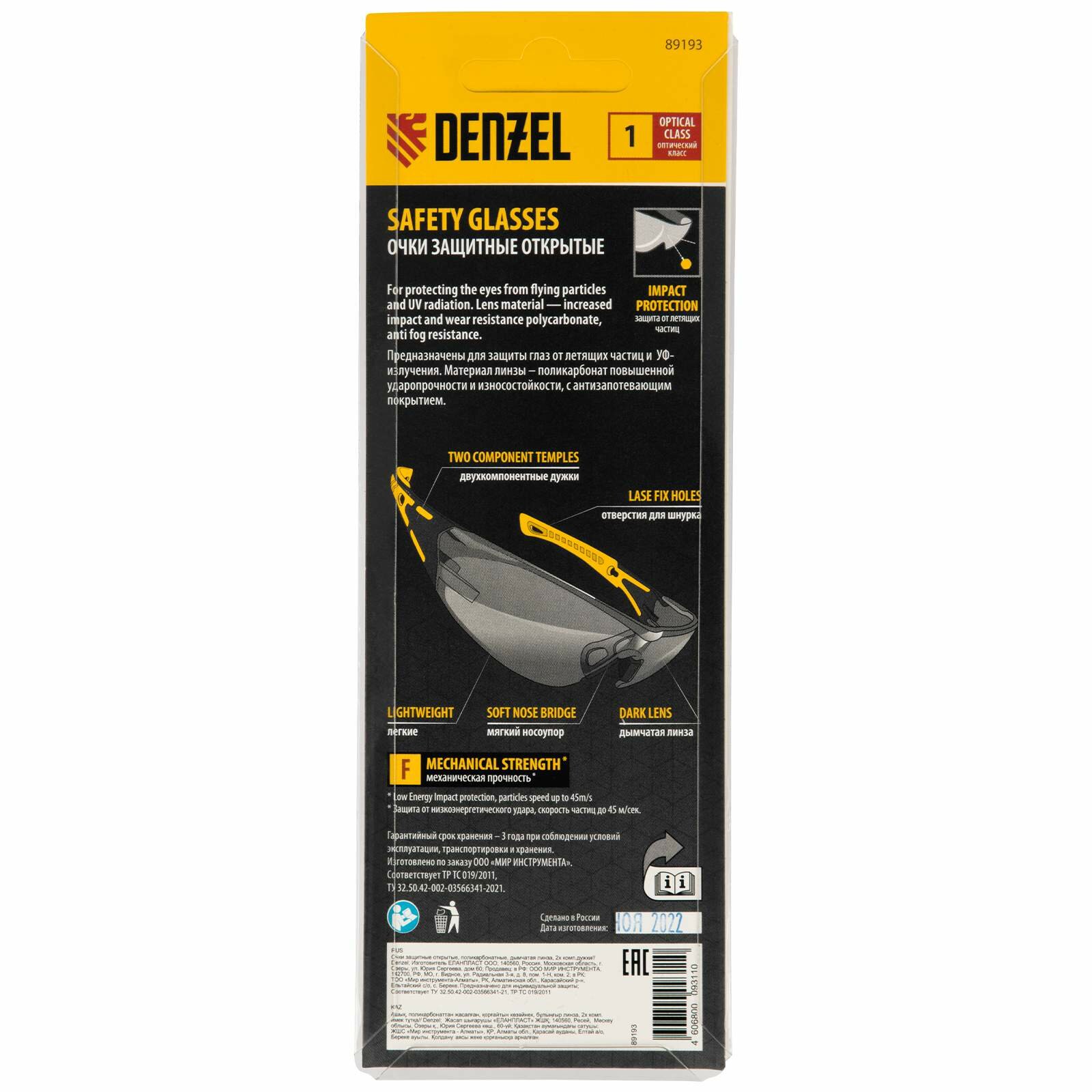 Очки защитные открытые Denzel , поликарбонатные, дымчатая линза, 2х комп.дужки, 89193 интересное: