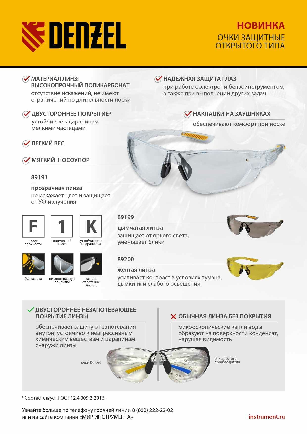 Очки защитные открытые Denzel поликарбонатные, прозрачная линза, 2х комп.дужки 89191 интересное: