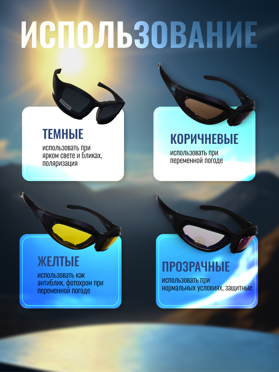 Тактические очки со сменными линзами / Защитные стрелковые / Очки для стрельбы / для активного образа жизни интересное: