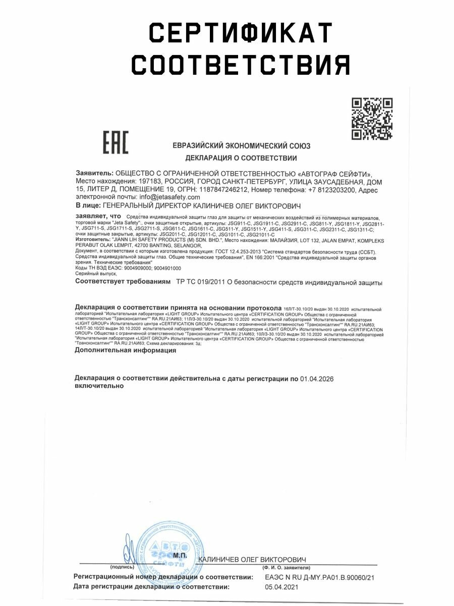 "Pro Vision JSG-2711S" - защитные очки с регулировкой