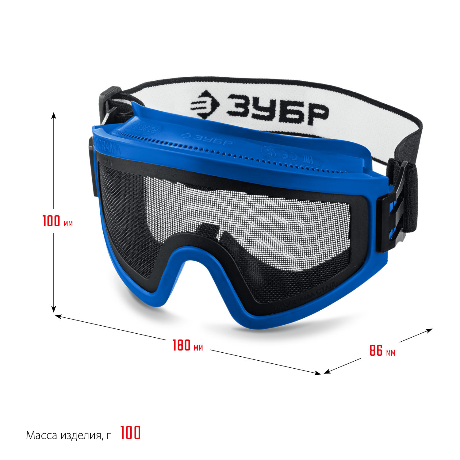 ЗУБР панорама сетка, закрытого типа, экран из стальной мелкоячеистой сетки, защитные очки, Профессионал (110234) интересное: