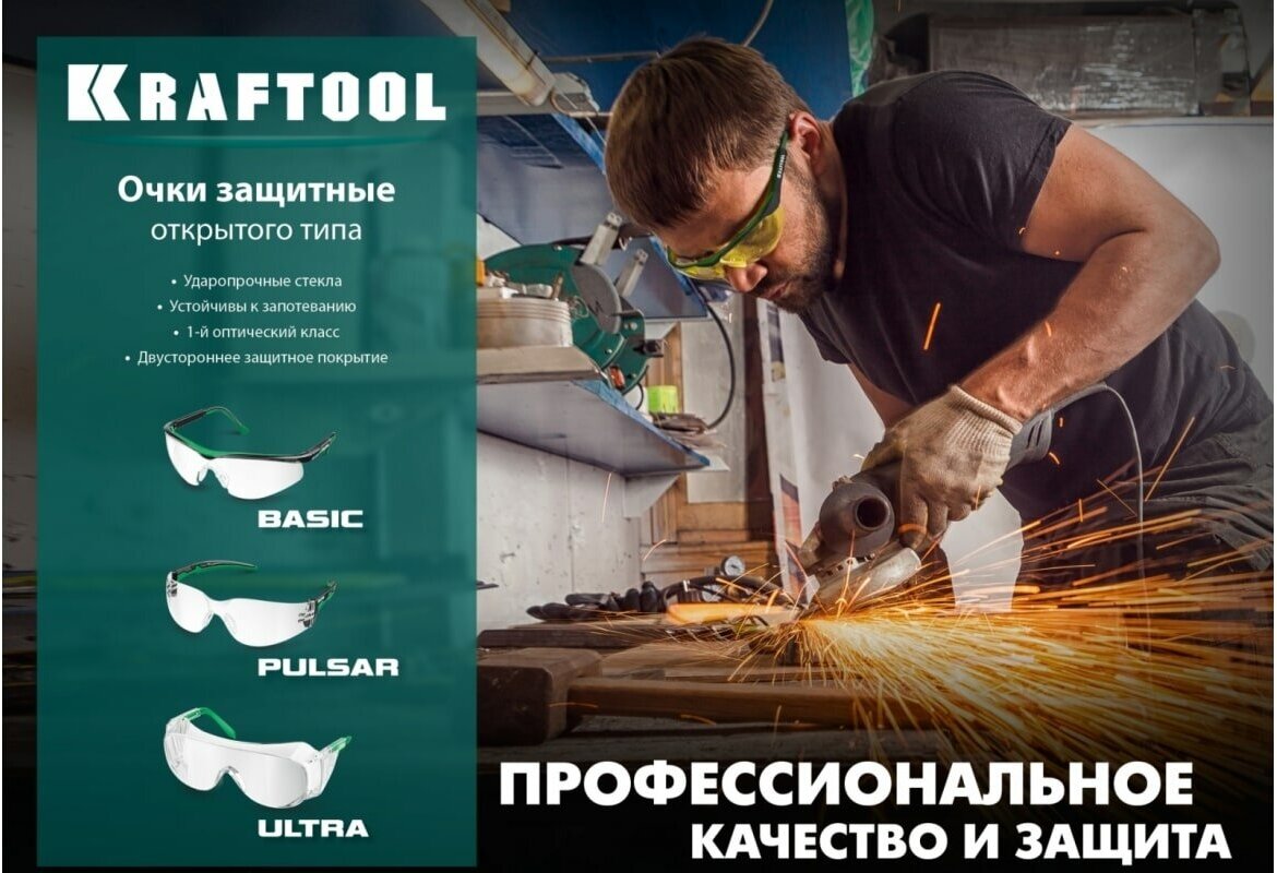 KRAFTOOL PULSAR, открытого типа, прозрачные, увеличенная линза устойчивая к запотеванию, панорамные защитные очки (110460)