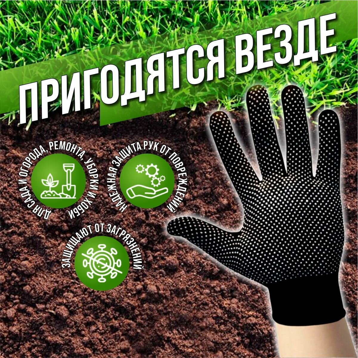 Перчатки рабочие нейлоновые "Микроточка" черные, 6 пар / Защитные / Перчатки строительные / Перчатки садовые / перчатки защитные