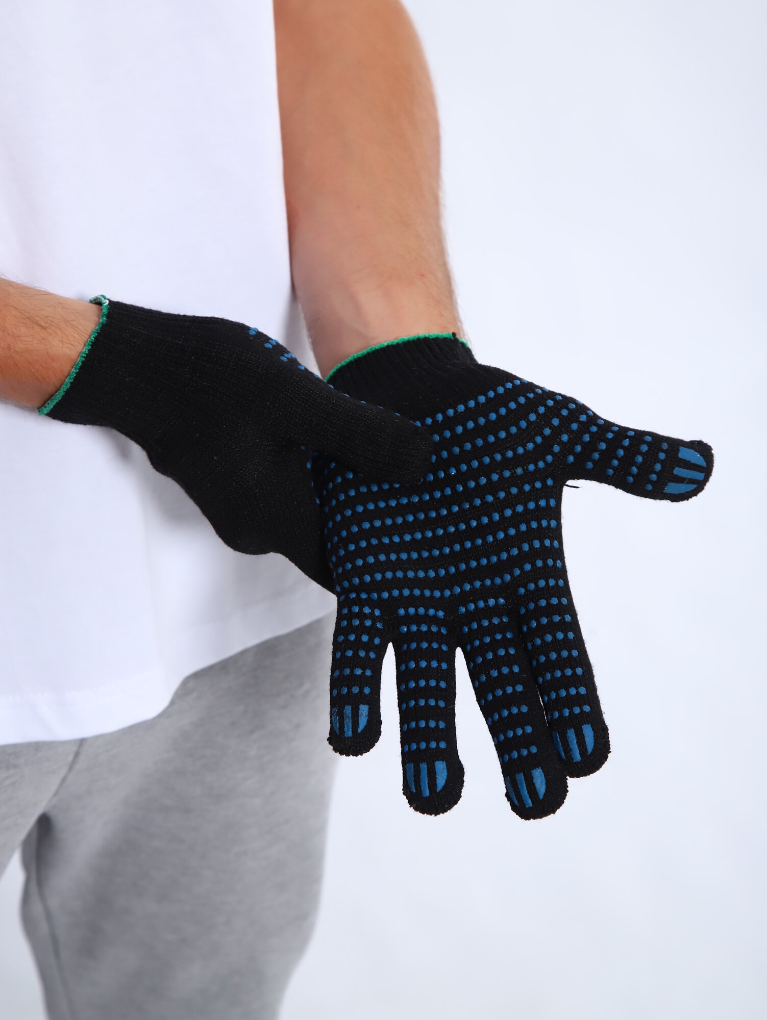 перчатки рабочие хб с пвх, строительные, ГОСТ, полноразмерные, 5 нитей, черные