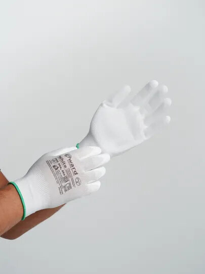 Нейлоновые перчатки с полиуретановым покрытием Gward белые, р. S, 12 пар PU1001