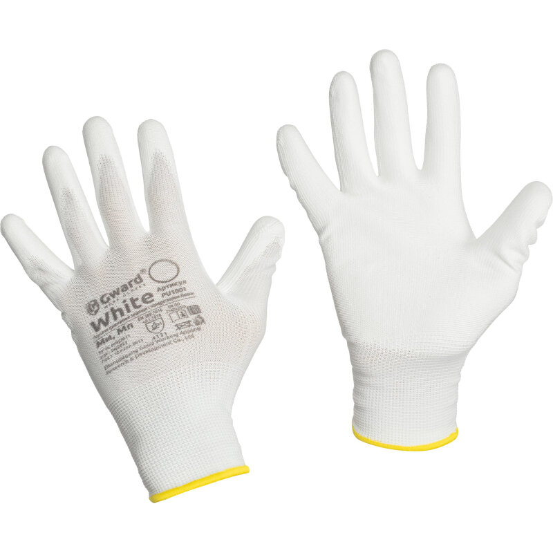 Перчатки защитные нейлон Gward White PU1001 с п/у покрытием р.9 (12 пар/уп), 1507329