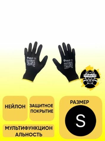 Перчатки нейлоновые с полиуретановым покрытием, размер S Gward Black черные, 12 пар.