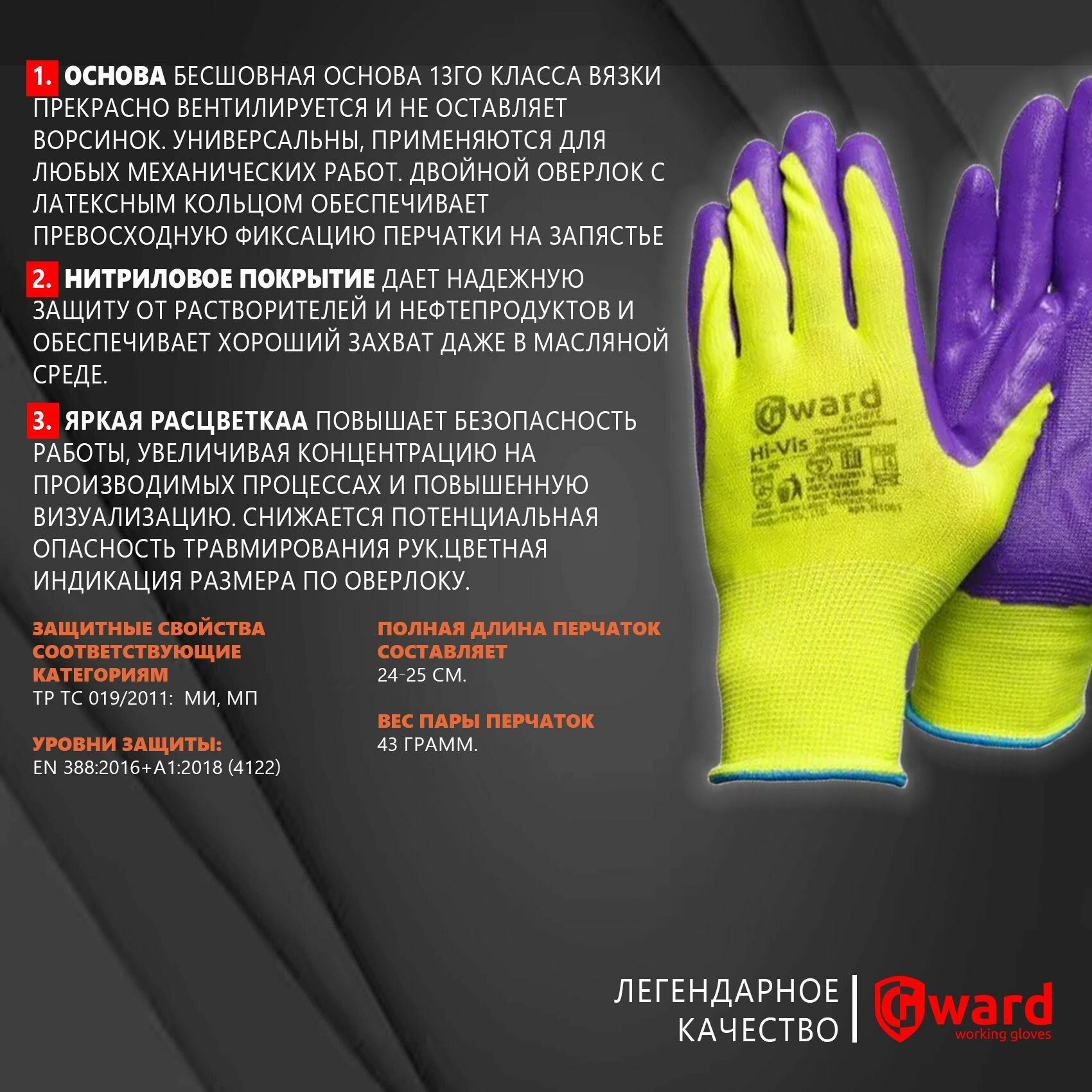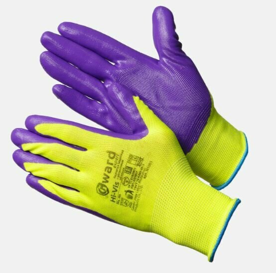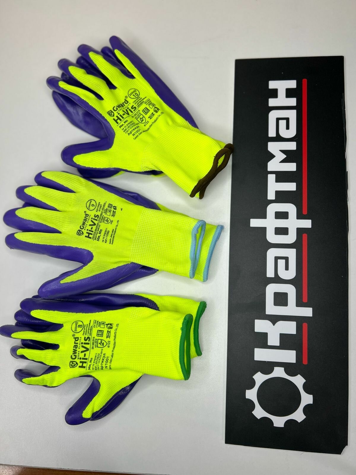 Перчатки нейлоновые с синим нитриловым покрытием Hi-Vis, рабочие, хозяйственные Gward Hi-Vis, размер 9 (L), 12 пар