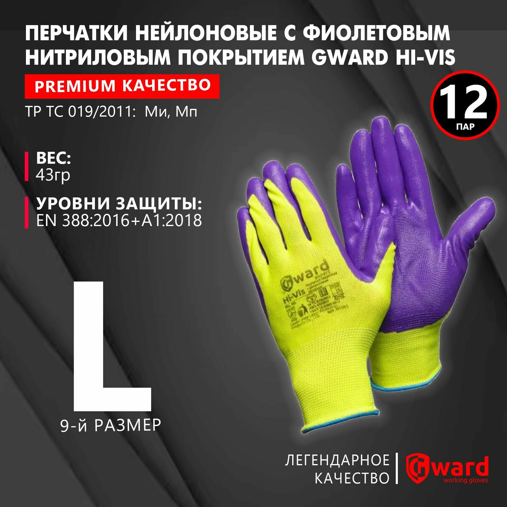 Купить Перчатки нейлоновые с синим нитриловым покрытием Hi-Vis, рабочие, хозяйственные Gward Hi-Vis, размер 9 (L), 12 пар